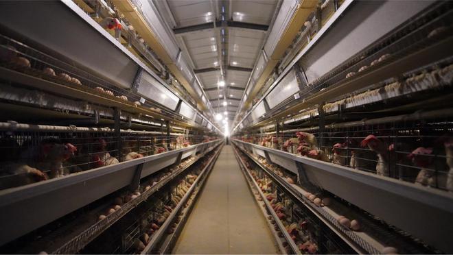 工作人員正在檢查蛋雞情況(王玲玲 攝)